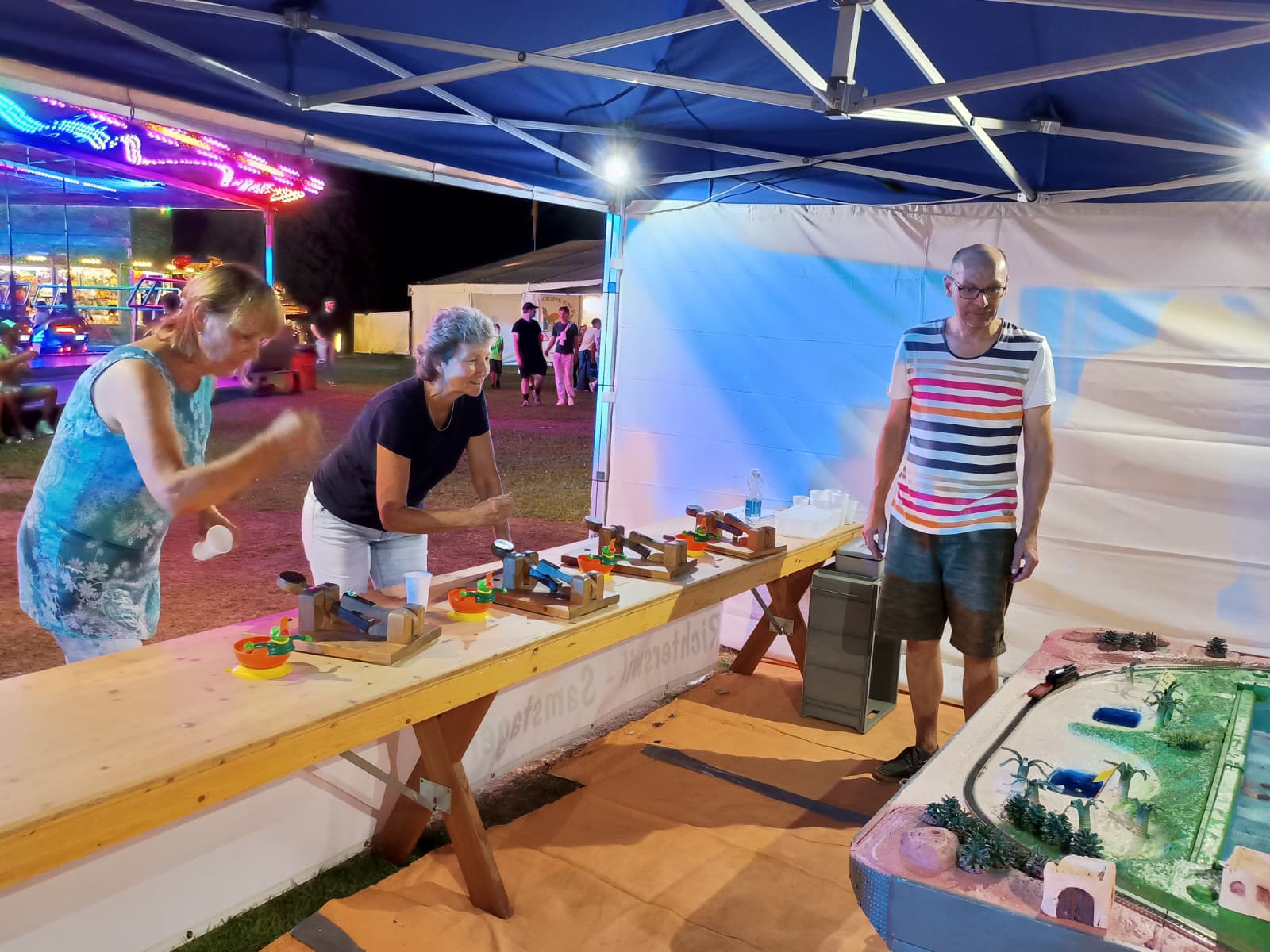 Auch dieses Jahr waren wir wieder mit unserer fast schon legendären Froschbude an der Dorfchilbi Richterswil vertreten und haben den Menschen viel Freude bereitet. Viele Kinder, Eltern und Grosseltern haben gemeinsam ihre Fähigkeiten getestet, indem sie kleine Frösche mit Geschick und ein wenig Glück auf die Insel oder in den Wagen der fahrenden Eisenbahn katapultierten. Die Leidenschaft war spürbar, als Familie, Freunde und Zuschauer angespannt mitfieberten und die Freude über jeden Treffer teilten. So konnten wir miteinander unvergessliche Momente erleben!